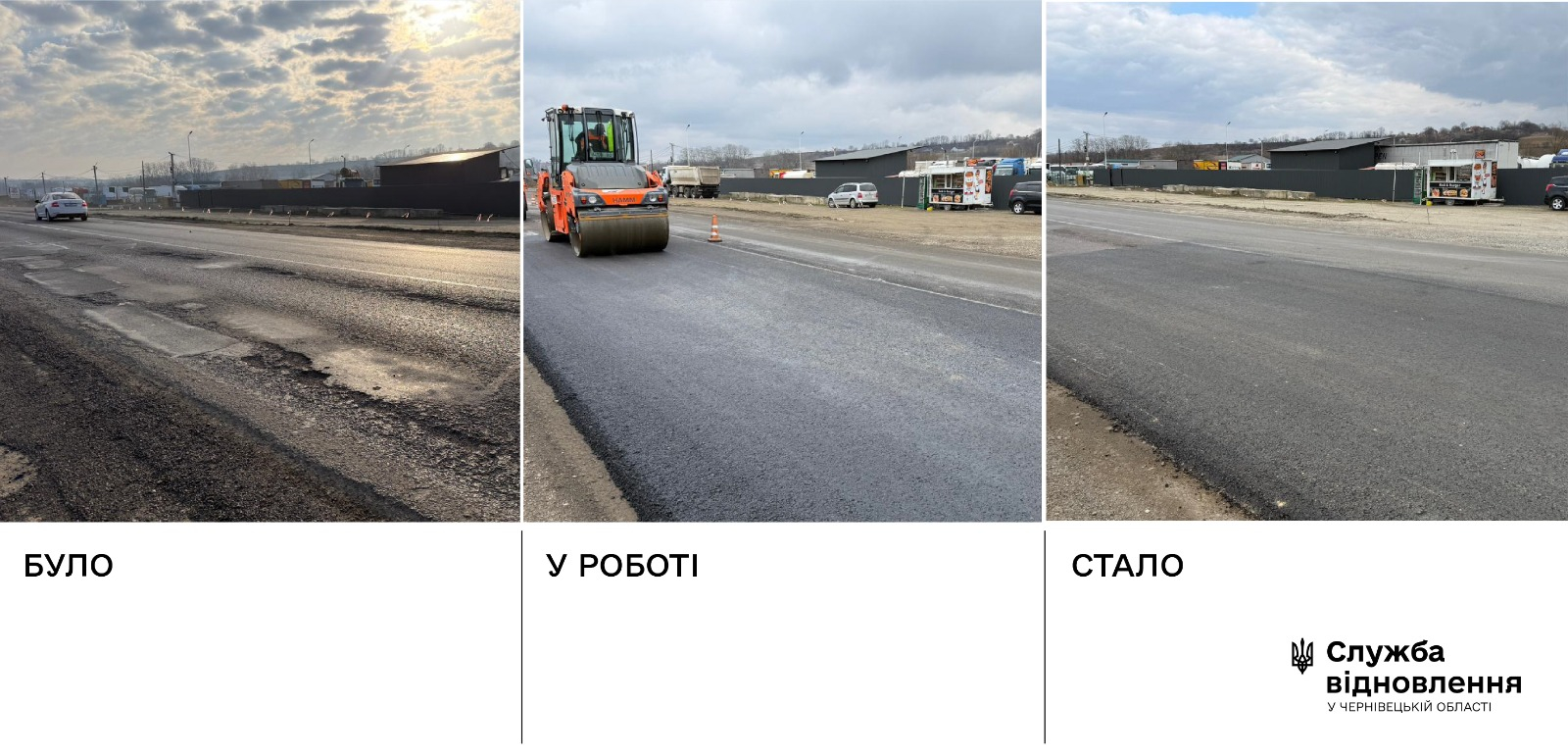 Завершено основний етап відновлення об’їзної дороги Чернівців, що є стратегічно важливою частиною міжнародної траси М-19 Доманове – Ковель – Чернівці – Тереблече. Ремонт виконували методом укладання великих карт. Такий підхід дозволяє швидко відновлювати зношене покриття суцільними ділянками без повного перекриття руху, забезпечуючи належну якість Загалом оновлено майже 14 тис. м² дорожнього полотна.