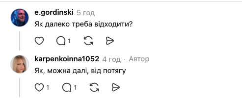 У коментарях під відео користувачі активно обговорюють побачене. Людей цікавить, на яку відстань потрібно відходити від потяга під час тривоги та чи є визначені безпечні місця.