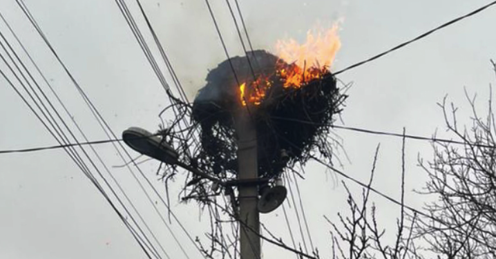Птахи розпочали будувати нове гніздо на електроопорі Реклама