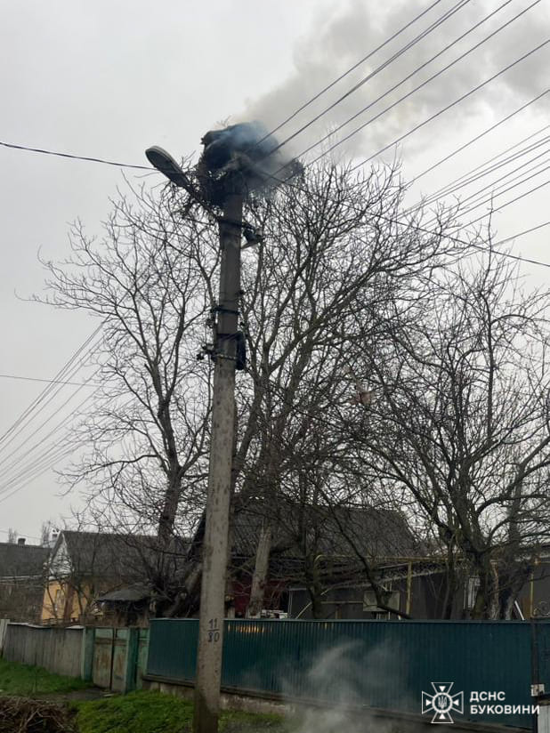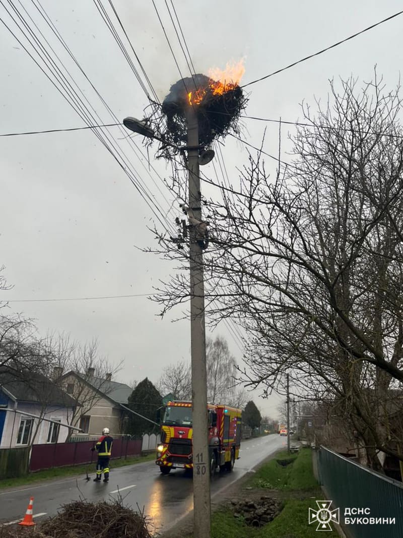 У Чернівцях рятувальники ліквідували загорання електропроводів на електроопорі та гнізда лелеки. Про це повідомляє Головне управління ДСНС України у Чернівецькій області.
