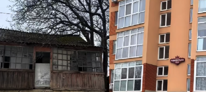У мережі обговорюють відео з вулиці Рівненської у Чернівцях, де поруч із сучасною багатоповерхівкою стоїть занедбана споруда з вибитими вікнами. Йдеться про будівлю на вулиці Рівненській, саме навпроти будинку №124.