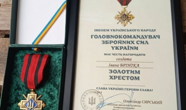 Захисника України із Сокирянщини Івана Брініка нагороджено «Золотим хрестом» Головнокомандувача ЗСУ.