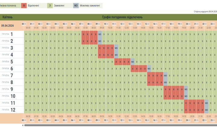 На Буковині оновили графік відключень світла на сьогодні, 8 квітня