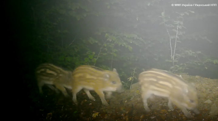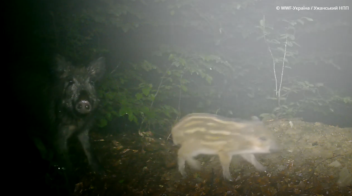 Завдяки фотопасткам, встановленим за сприяння Всесвітнього фонду природи WWF-Україна, вдалося зафільмувати рідкісні кадри з життя мешканців Ужанського національного парку (Закарпаття) – диких кабанів.