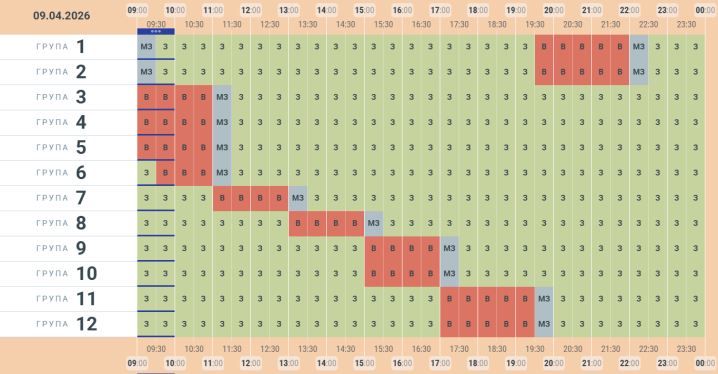 Реклама«Чернівціобленерго» вдруге за ранок оновило графік погодинних відключень світла у четвер, 9 квітня. Друге вимкнення світла за добу додали для споживачів у 1 і 2 групах, які сьогодні вже були зранку без світла.