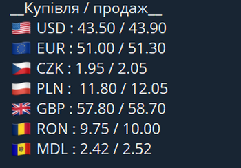 РекламаСьогодні, 14 квітня, у чернівецьких обмінниках долар дещо подешевшав порівняно із попередньою добою. За 1 долар в обмінниках дають 43 гривні 50 копійок, а продають за 43,90. Євро зріс у ціні і сьогодні на купівлі досяг позначки 51 гривня. Продають європейську валюту за 51,30.