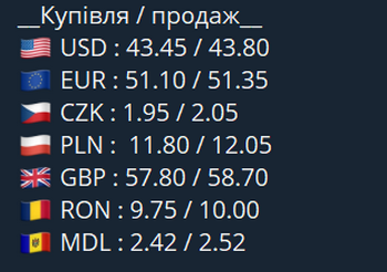 РекламаСьогодні, 15 квітня, у чернівецьких обмінниках долар приймають по 43 гривні 45 копійок, а продають за 43,80. Євро купують за 51,10, продаж – 51,35.