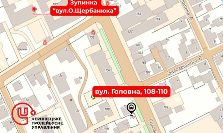 У Чернівцях тимчасово перенесли зупинку "Вулиця Щербанюка" на Головній