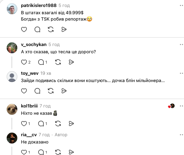 Також коментатори діляться фото ще кількох автомобілів цієї моделі, які є у місті.